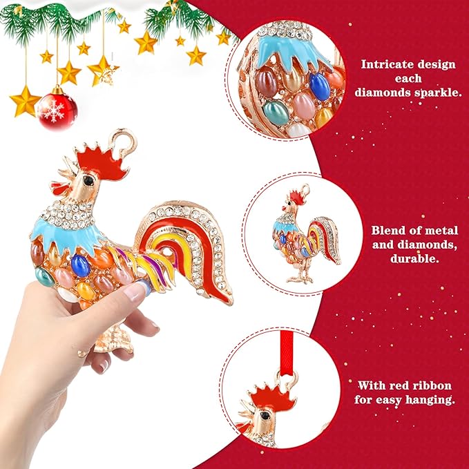 - 【Enjoy Long-Lasting Beauty】: Made from durable metal and adorned with vibrant colors and rhinestones, chicken Christmas tree ornament showcases exquisite craftsmanship, ensuring it remains a stunning part of your decor for years to come.