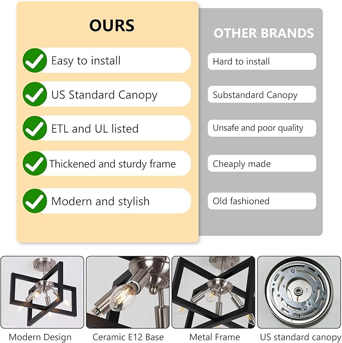 - EASY INSTALLATION:This ceiling light fixture is easy to install and ETL listed for safety.