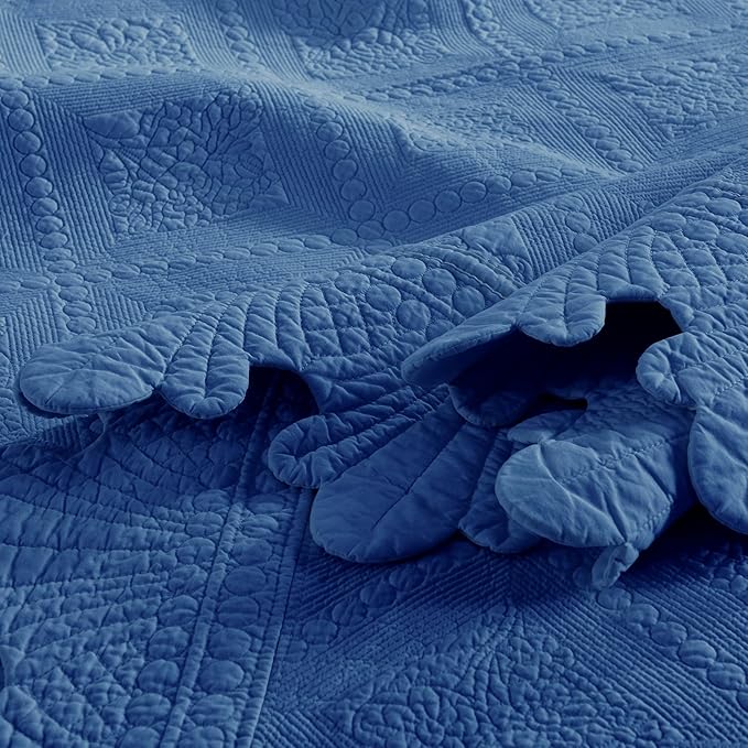 MarCielo 3-Piece 100% Cotton Oversized Bedspread Lightweight Quilt Coverlet Embroidery Farmhouse Bedding Set (Tk Midtone Blue, Oversized King (118"x106"))