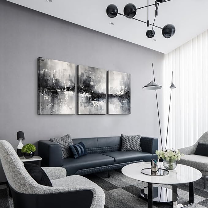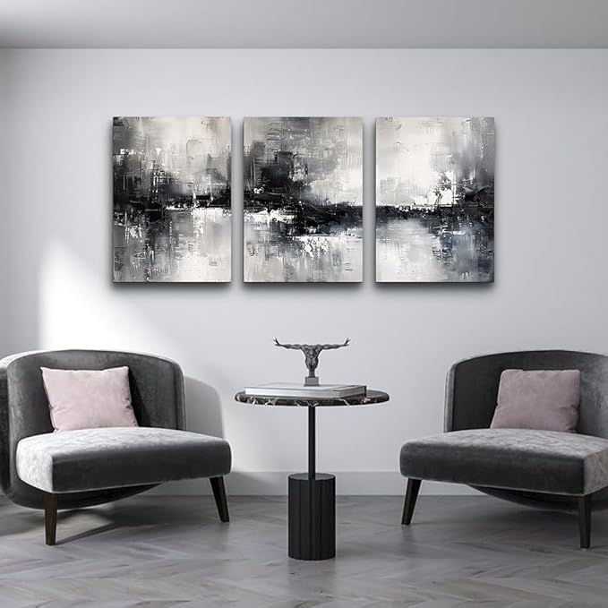 DZRWUBHS Large Wall Art for Living Room Canvas Wall Decor for Bedroom Black And White Wall Painting Inspirational Abstract Pictures Artwork Modern Office Ready to Hang Minimalist Home Decor Set of 3