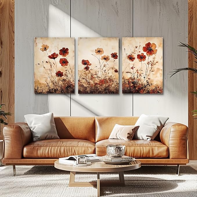 DZRWUBHS Boho Living Room Wall Art Prints Minimalist Wall Decor For Bedroom Vintage Flowers Pictures Office Decorations Bathroom Plant Canvas Painting Modern Home Decor Artwork 3 Piece Ready To Hang