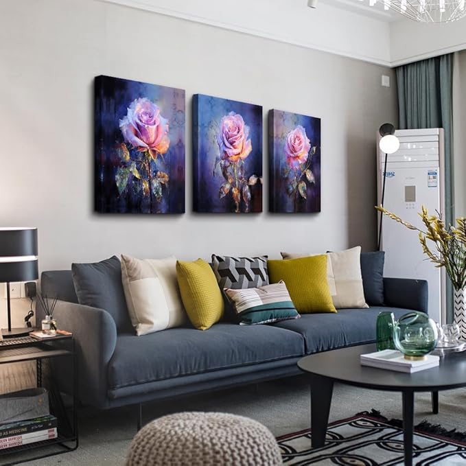 DZRWUBHS Canvas Wall Decor for Bedroom Living Room Wall Pictures Rose Flowers Wall Art Painting Modern Office Floral Home Decorations Vintage Posters Minimalist Farmhouse Ready To Hang 3 Piece