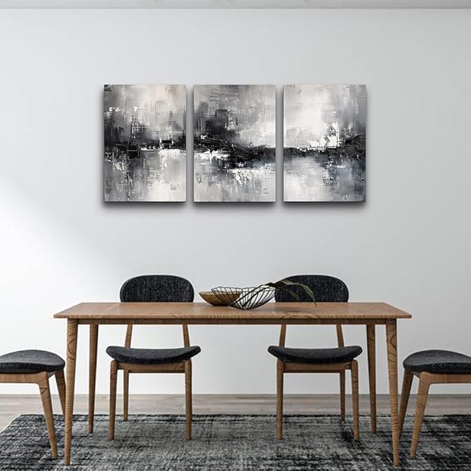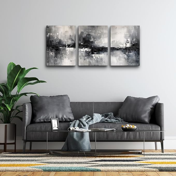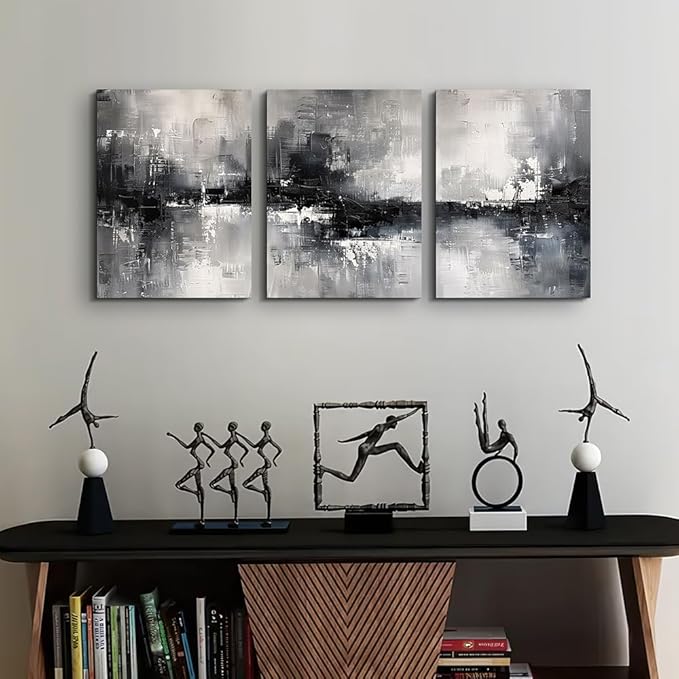 DZRWUBHS Black and White Wall Painting for Living Room - Canvas Art Decor for Bedroom - Inspirational Abstract Pictures - Modern Office Minimalist Home Artwork - Ready to Hang Set of 3