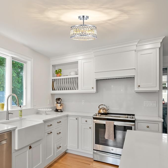 - Crystal Design: The chrome crystal ceiling light features metal frame with crystals, adds a eleglant touch to the round crystal light, making it stunning and shiny