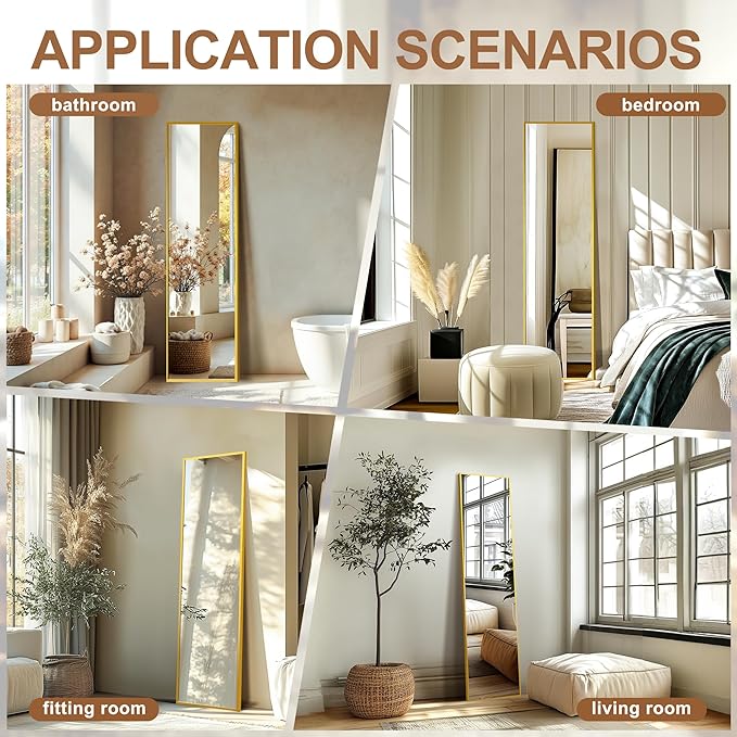 - RESISTANT & STURDY FRAMED: Full body mirror frame is made of Aluminium alloy, which is not easily discoloured, not easily deformed and has better performance than MDF and wooden ones,especially in humid environments.
