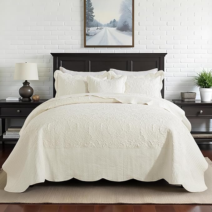 - 🌲🌲Aesthetic & Functional 🌲🌲HoneiLife Extra Large Quilt Set cover your bed better,Reversible,Classical Tangled Branches Pattern,Solid colors are easy to match your room,Embroidered bedspread sets sewed with neat stitches, Extra Throw Pillow Cover,Pair with delicate and lovely fan edge, enhance your bedroom neatly and attractively