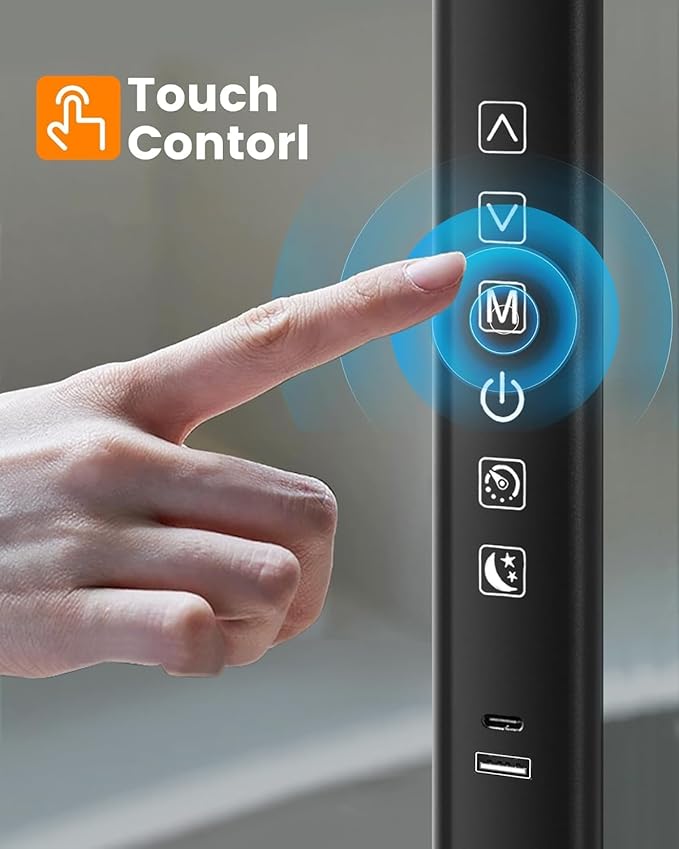 - Adjustable Office Desk Lights: 5 brightness levels (0-100%) and 5 color temps (3000K-6500K) via touch control.Memory function preserves preferences, while a 45-minute timer prevents overworking,ideal for flexible desk lamp for home office setups