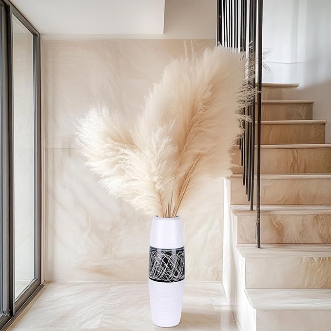 - 【Match With Dried Flowers】Floor vase is perfect for match with artificial flowers, pampas grass, twigs, wicker and long branches. Even without the ornamentation of plants, it also will be a great decoration for anywhere. Water is not recommended as it may cause the metal vase to rust. NOTE: flowers and plants are not included