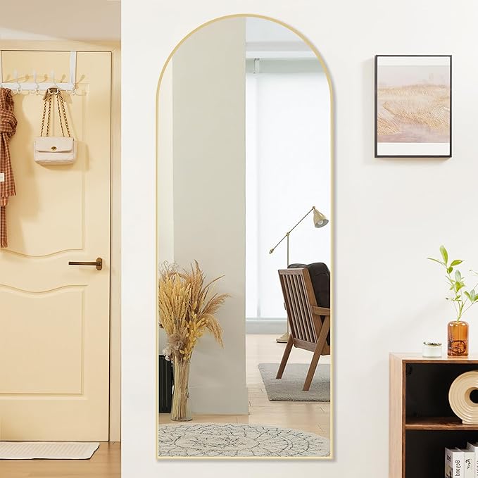 Sweetcrispy 64"x21" Arched Full Length Mirror, Standing or Leaning Full Body Mirror with Aluminum Alloy Thin Frame, Suitable for Bedroom or Cloakroom,Gold