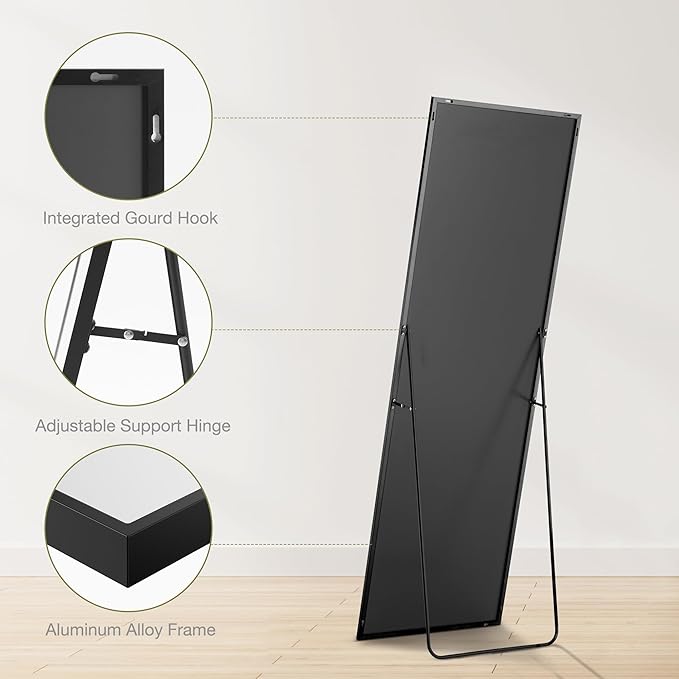 - 【LARGE SIZE】Measuring 64" in length and 21" in width, this full-length standing mirror offers ample reflection space, allowing you to view your entire figure with ease. More than just a functional body mirror, it also serves as a stylish art piece, adding a touch of elegance to your home and enhancing your mood daily.