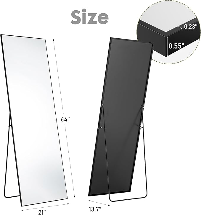Sweetcrispy 64"x21" Full Length Mirror, Standing or Leaning Full Body Mirror with Aluminum Alloy Thin Frame, Suitable for Bedroom or Cloakroom,Black