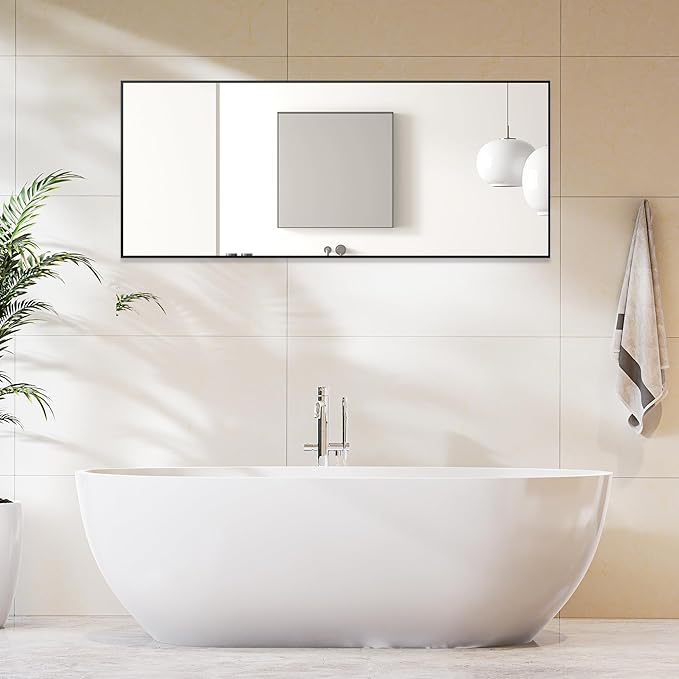- 【ALUMINUM ALLOY FRAME】This full-length wall mirror features a durable, anti-rust, and colorfast aluminum alloy frame. With a slim profile (just 0.23" wide on the front), it offers both strength and a sleek, shiny finish. The wire drawing treatment enhances the texture, providing a minimalist yet sophisticated look.
