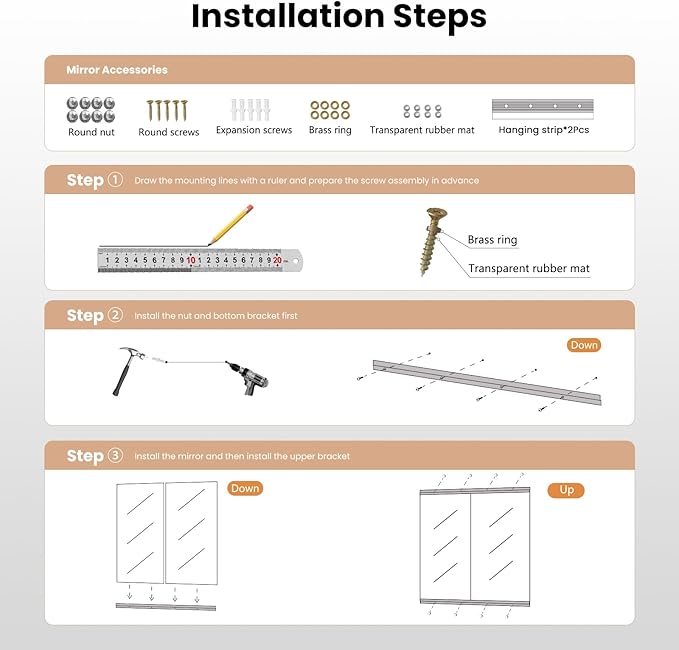 - 【Easy Sturdy Installation】Easy to install with J-bar bracket. The wall gym mirror design with sturdy installation method and provide a decoration. For more specific installation steps, please refer to the user manual. (Hardware included);