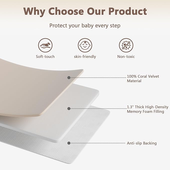 - 【Thick Memory Foam Rug】1.3-Inch Thick Memory Foam Rug for Superior Comfort Our memory foam rug provides a plush, supportive surface that’s perfect for your baby’s playtime, tummy time, or naps. The 1.3-inch thickness ensures maximum comfort and protection.