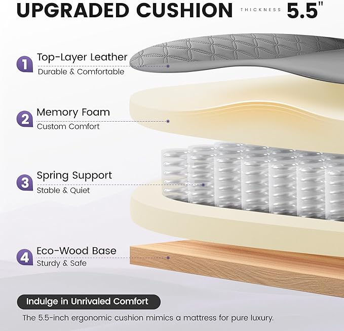 - ๐๐ข๐ ๐ก-๐๐ง๐ ๐๐ฎ๐ฑ๐ฎ๐ซ๐ฒ ๐๐๐๐ญ๐ก๐๐ซ: This office chair is crafted with a special type of top-notch imitation leather that's not only luxurious in appearance but also impressively resilient against cat scratches. This leather has a fine-grained texture, mimicking the look and feel of genuine cowhide with a natural sheen that elevates the aesthetic of any room