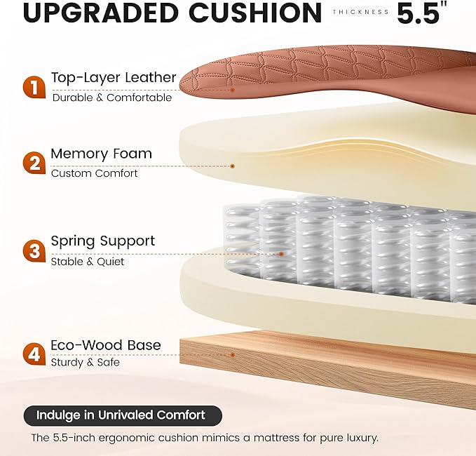 - ๐๐ข๐ ๐ก-๐๐ง๐ ๐๐ฎ๐ฑ๐ฎ๐ซ๐ฒ ๐๐๐๐ญ๐ก๐๐ซ: This office chair is crafted with a special type of top-notch imitation leather that's not only luxurious in appearance but also impressively resilient against cat scratches. This leather has a fine-grained texture, mimicking the look and feel of genuine cowhide with a natural sheen that elevates the aesthetic of any room
