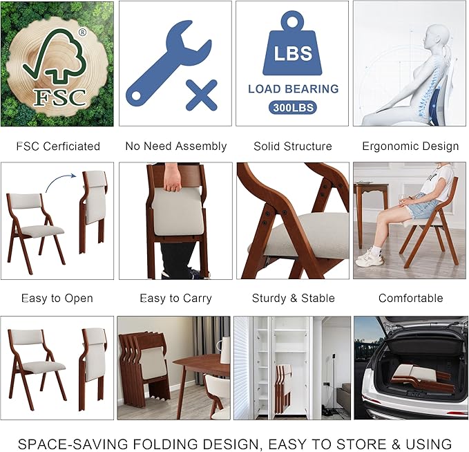 - 【Sturdy & Durable】The modern wooden folding chairs be made of quality solid wood, durable and stable; High resilience sponge cushion, soft and comfortable. Weight capacity 250lbs.