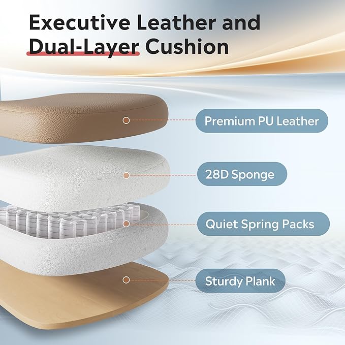 - Premium Leather&Thick Cushion:Breathable,easy-to-clean PU leather ensures ventilation and coolness for constant comfort;the four-layer cushion structure prevents collapsing,and 28D cotton and spring provide immersive enjoyment,ensuring that the cushion has the right amount of elasticity and is not easily deformed.