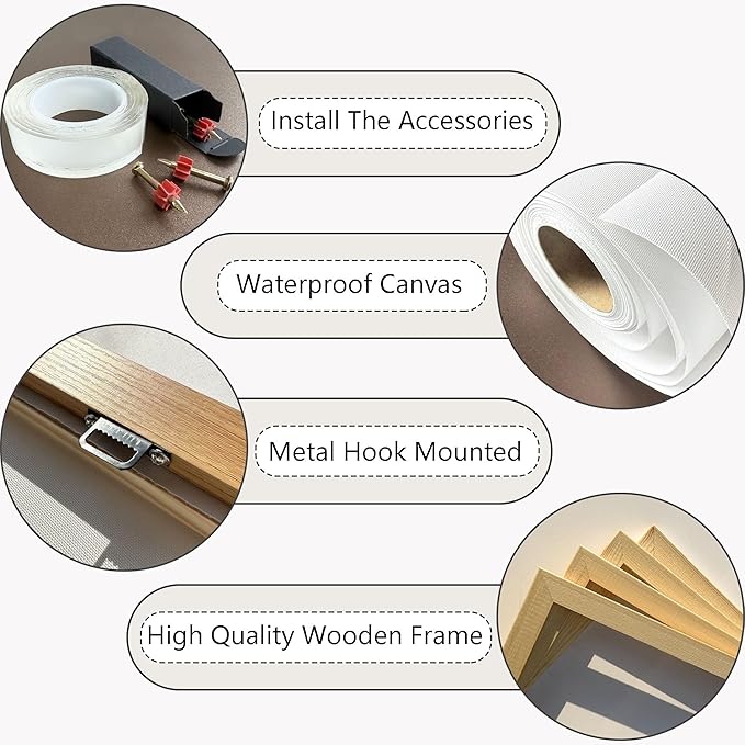 - Nature wall Art: Each piece comes pre-stretched on a solid wooden frame with pre-installed D-ring hooks and hanging accessories, making it easy to hang and instantly refresh your walls.