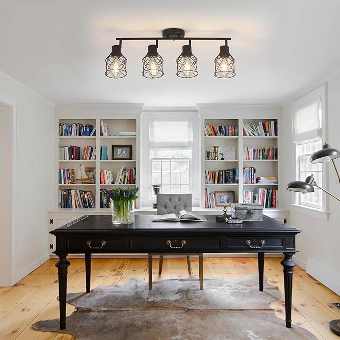 - 【Directional Farmhouse Ceiling Light Design】This modern ceiling light fixture comes with metal cage shade crafted from premium iron, combining the style of modern and retro. And this black ceiling light is suitable for any home decor style, creating a comfortable and elegant atmosphere in your house. The hallway light fixtures is ideal for decorating your home!