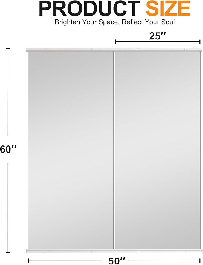 Delma Large Full Body Mirror for Yoga, Frameless Wall-Mounted Glass Panel (60"x25"-White) 2PCS for Home, Garage, Bedroom & Bathroom