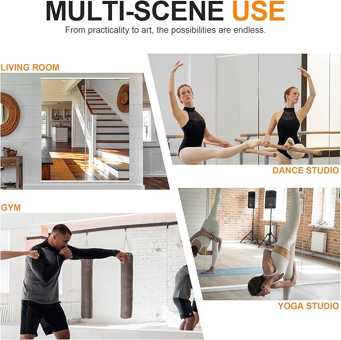 - WIDE APPLICATION: These large full lenth mirror can be mounted in home gym, garage, bedroom, bathroom, is a must-have product for fitness, dance, yoga.