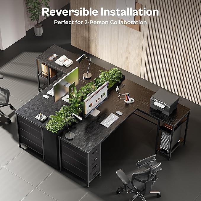 - 【Reversible Home Desk with Larger Legroom】Reversible L-shaped design lets you set up the work desk or gaming desk left or right to fit your space. Want a shared workspace or gaming room? Combine l shaped desks with storage for a roomy 2-person setup — great for home offices or open workspaces with lots of legroom