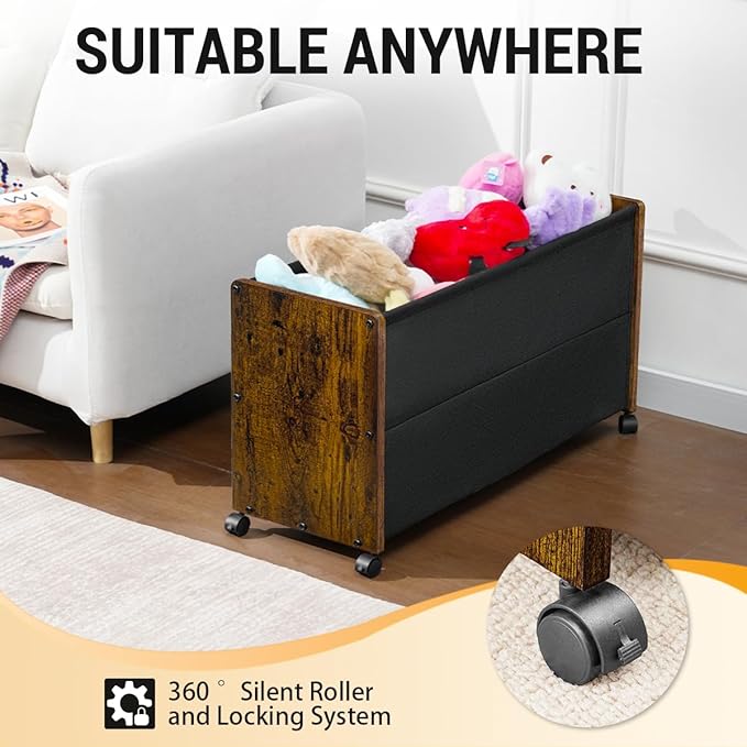 - 360° Lockable Wheel Toy Chest: Patented 360° wheels (2 lockable + 2 swivel) transform this toy box for boys girls into mobile playroom storage. Engage kids in cleanup games, then secure instantly with foot brakes.