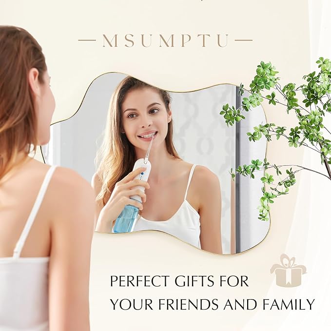 Irregular Wall Mirror Gold Wave Shaped Matel Framed Wall Mirror for Bathroom Bedroom Entryway Living Room Wall Decor 28" L x 20" W 2304Gold