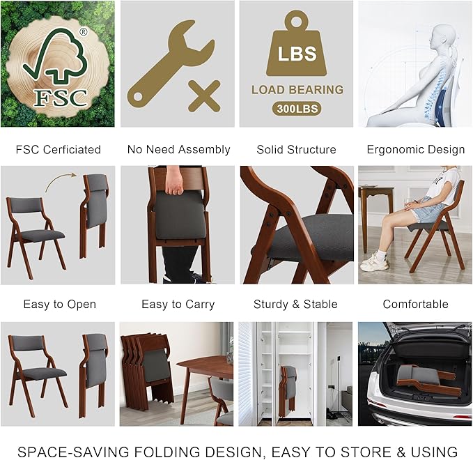 - [Space-Saving Foldable Dining Chairs] Perfect for small spaces! These folding chairs—tuck them under beds, in closets, or car trunks. Yet they support up to 250 lbs.