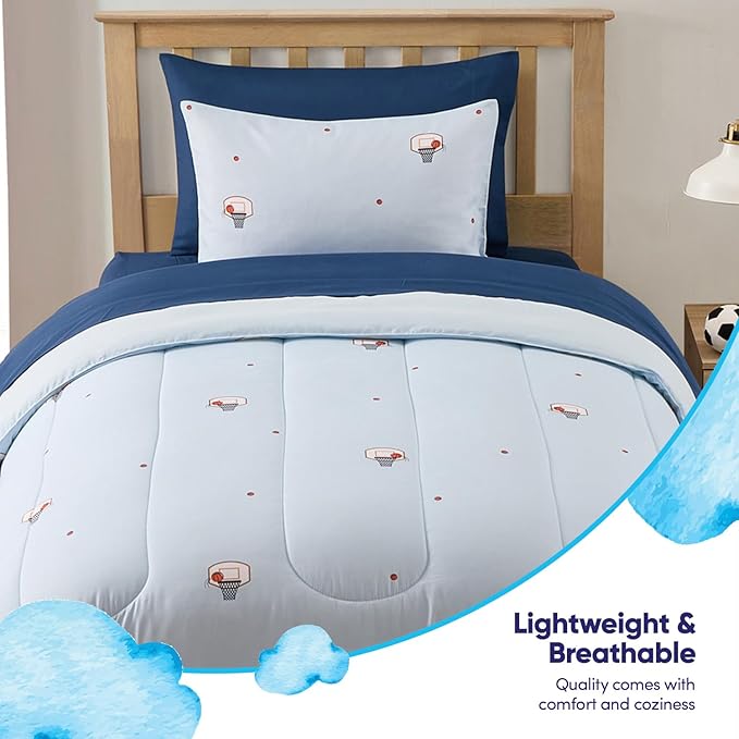 Basketball Comforter Set Twin Size – Bed in a Bag with Sheets, Pillowcases & Shams – Soft Stylish Sports Bedding – All Season Boy’s Basketball Bed Set