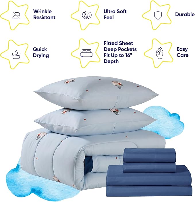 Basketball Comforter Set Full Size – Bed in a Bag with Sheets, Pillowcases & Shams – Soft Stylish Sports Bedding – All Season Boys Basketball Bed Set