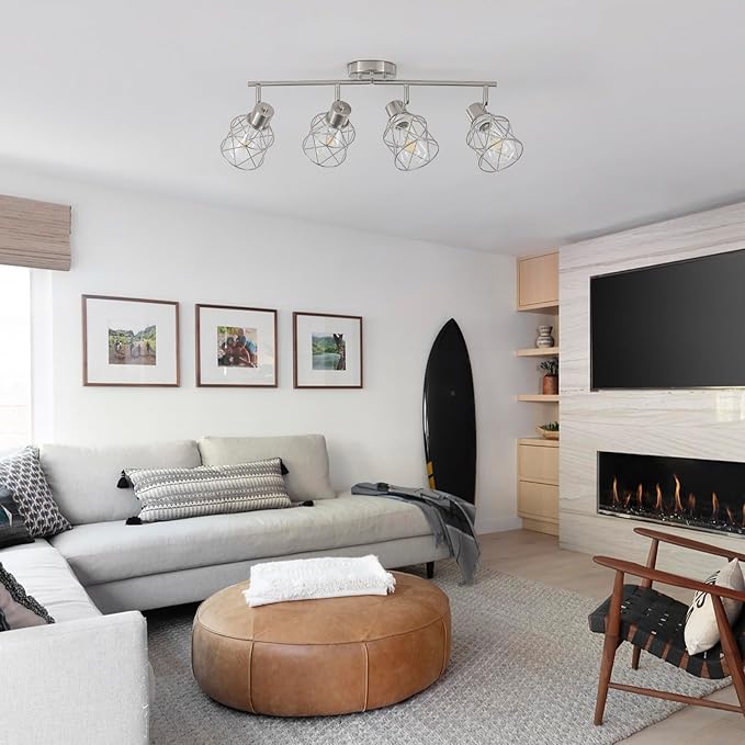 - 【Directional Farmhouse Ceiling Light Design】This modern ceiling light fixture comes with metal cage shade crafted from premium iron, combining the style of modern and retro. And this brushed nickel ceiling light is suitable for any home decor style, creating a comfortable and elegant atmosphere in your house. The hallway light fixtures is ideal for decorating your home!