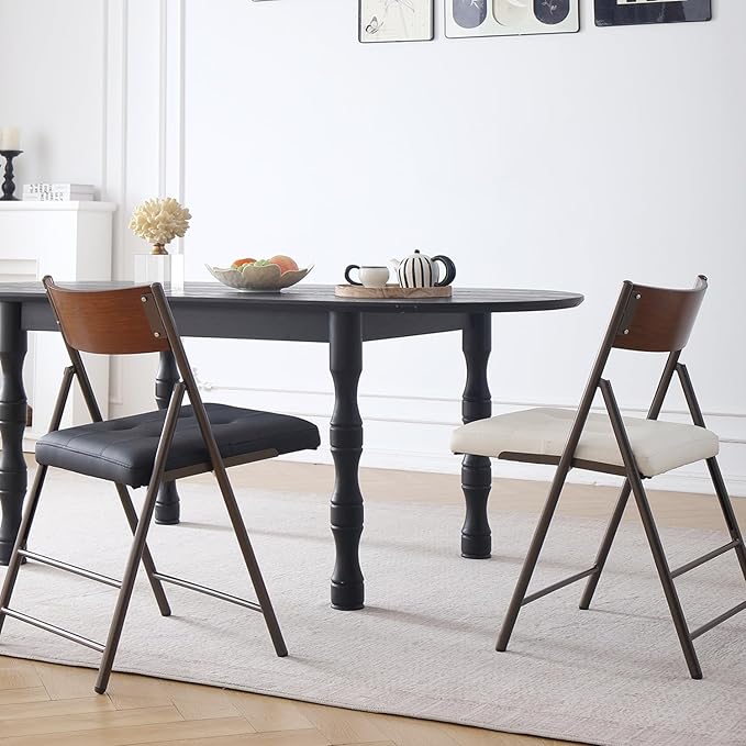 2 Pack Folding Chairs with Thick Padded Seat,Heavy Duty Steel Frame Foldable Dining Chairs with Soft Cushion Set of 2,Portable Indoor Outdoor for Home Kitchen,Office,Events,Wedding(Black)