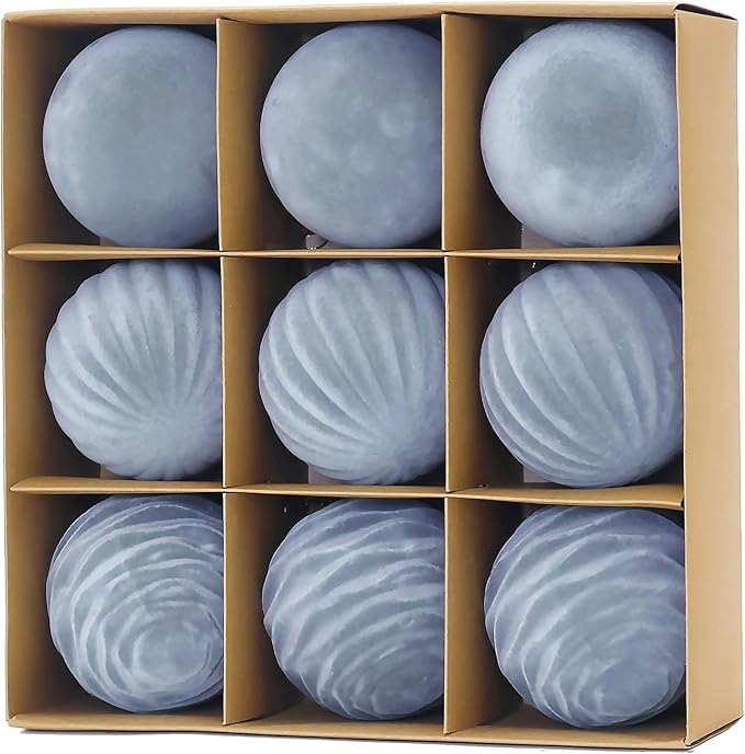 4inch Velvet Ornaments for Christmas Tree, 9 pcs Flocked Dusty Blue Christmas Ornaments Balls Set Assortment for Xmas Tree Holiday Decor