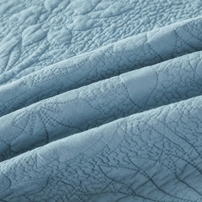 - EASY CARE DURABLE QUALITY - Machine-wash in COLD,gentle cycle,separately. Dries quick on tumble dry low heat. Cotton product definitely gets softer and the stitching pattern gets more appealing after washes and uses. The quilt set comes vacuum-packed; it would puff up when washed and dried, and take on a more textured appearance.