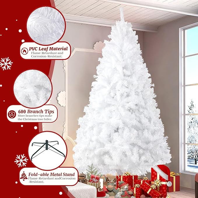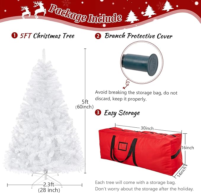 5ft Artificial Christmas Tree, Arbol de Navidad with 600 Branch Tips, Premium North Valley Spruce with Foldable Base Stand, Xmas Tree for Home, Office,Party Decoration-White