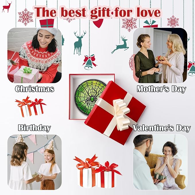 Glass Window Hanging - Black Green Horror Spider Web Suncatcher for Doors Garden Patio Sun Catchers Decor Christmas Halloween Birthday Gifts for Women Men Mom Nana Friend 15 in