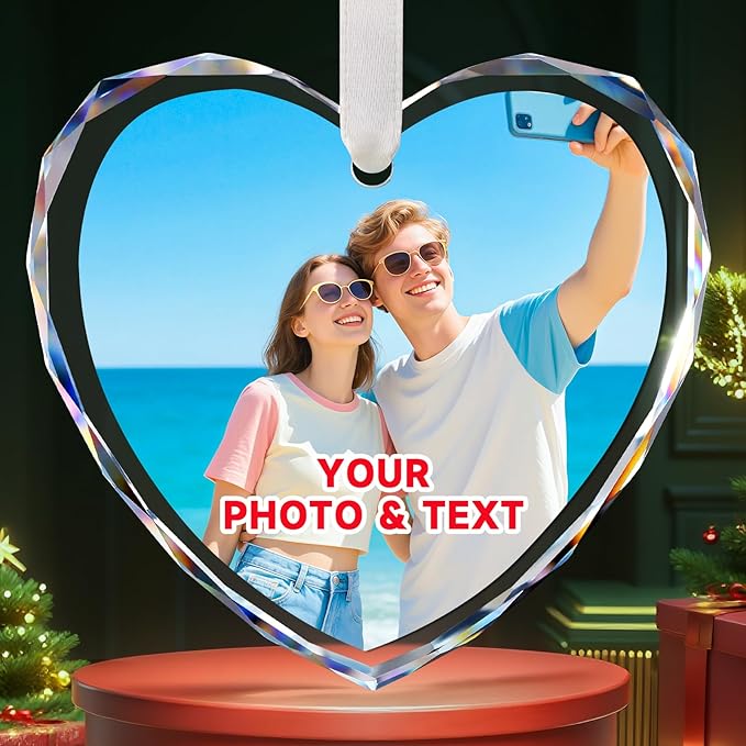 Personalized Christmas Ornaments 2025 - Custom Crystal Photo Ornaments for Christmas Tree, Wedding Engagement Gifts for Couples, Bridal Shower Gifts for Bride