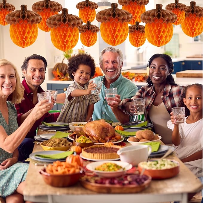 - Package Content: You will receive 15 pieces fall acorn honeycomb decorations in 3 sizes, 15 cm(7 pieces), 20 cm(5 pieces) and 25 cm(3 pieces). Rich in color and full in three dimensions, acorns for decorations create a warm and romantic autumn atmosphere, and hang at random to create a rich visual level