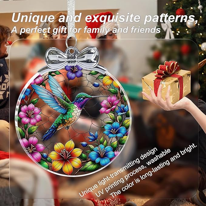Hummingbird Stained Glass Christmas Ornament - Hanging Ornaments for Christmas Tree Decorations -Holiday Keepsake Present Exchange Idea
