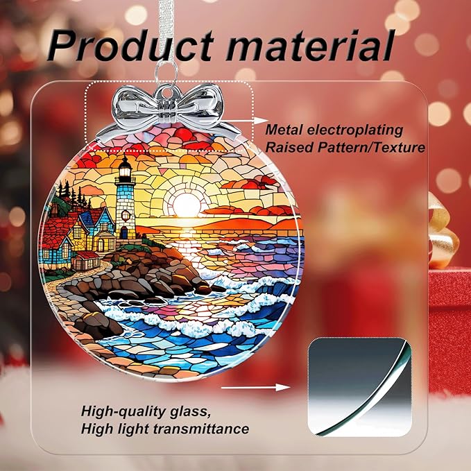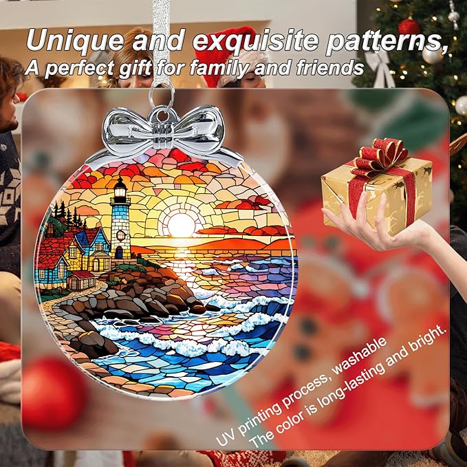 Lighthouse Stained Glass Christmas Ornament - Hanging Ornaments for Christmas Tree Decorations -Holiday Keepsake Present Exchange Idea