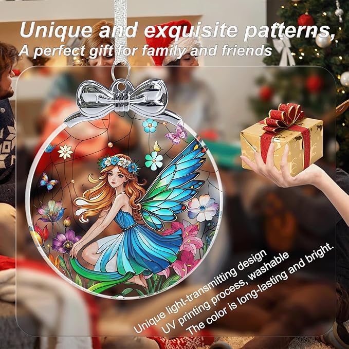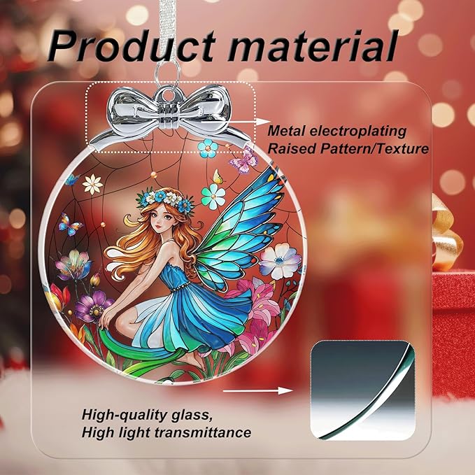 Butterfly Fairy Stained Glass Christmas Ornament - Hanging Ornaments for Christmas Tree Decorations -Holiday Keepsake Present Exchange Idea