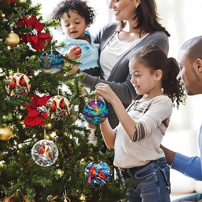 Christmas Northern Lights Ornament Colorful Round Ceramic Ornament Xmas Keepsake for Christmas Tree Winter Holiday Xmas Gift for Women Men Xmas Holiday Party Decor 3"