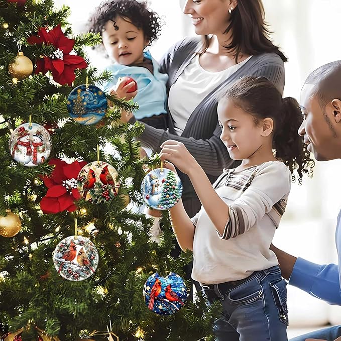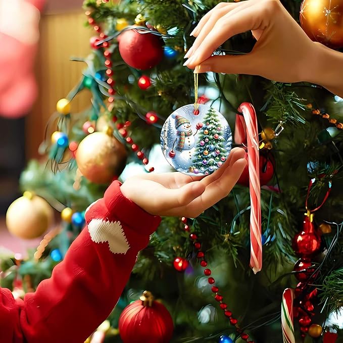 Snowman Ornaments Snow Pine Round Ceramic Ornament Christmas Keepsake Decor for Christmas Tree Winter Holiday Xmas Gift for Women Men Hanging Ornament 3"