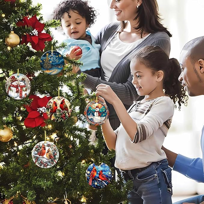 Snowman Ornaments Round Ceramic Stained Glass Style Ornament Christmas Keepsake Decor for Christmas Tree Winter Holiday Xmas Gift for Women Men Hanging Ornament 3"