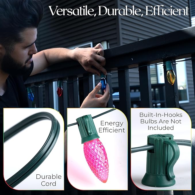- Energy Efficient - Our C9 light cord is compatible with LED bulbs for brighter, more colorful lighting while saving energy and lowering electricity costs.