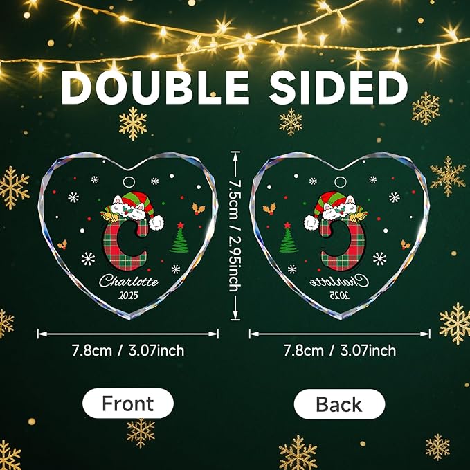 - CUSTOMIZABLE CHRISTMAS TREE DECOR: Enhance your holiday decor with our Christmas initial ornaments. The name ornaments design can be part of a set of Christmas ornaments with initials, you can use this Custom Initial Ornaments as a decor item in your Christmas Tree, Stocking, Gift Card. These initial Christmas tree ornaments are a wonderful way to celebrate each family member uniquely.