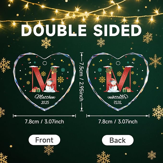 - CUSTOMIZABLE CHRISTMAS TREE DECOR: Enhance your holiday decor with our Christmas initial ornaments. The name ornaments design can be part of a set of Christmas ornaments with initials, you can use this Custom Initial Ornaments as a decor item in your Christmas Tree, Stocking, Gift Card. These initial Christmas tree ornaments are a wonderful way to celebrate each family member uniquely.