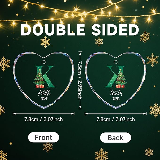 - CUSTOMIZABLE CHRISTMAS TREE DECOR: Enhance your holiday decor with our Christmas initial ornaments. The name ornaments design can be part of a set of Christmas ornaments with initials, you can use this Custom Initial Ornaments as a decor item in your Christmas Tree, Stocking, Gift Card. These initial Christmas tree ornaments are a wonderful way to celebrate each family member uniquely.